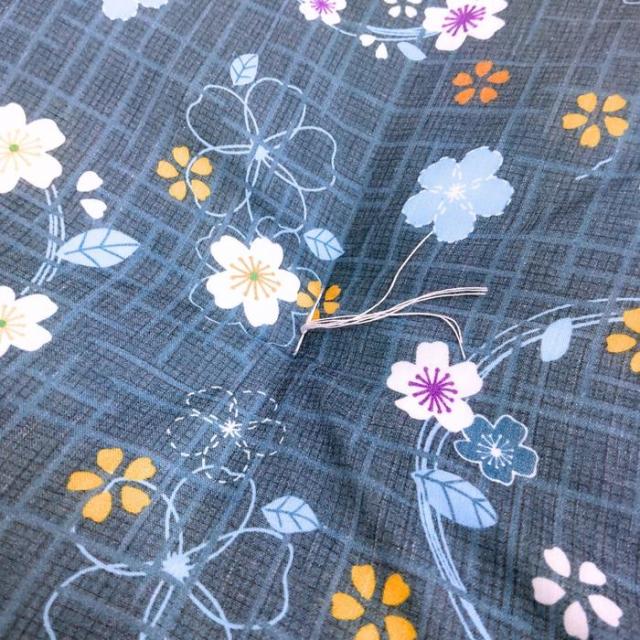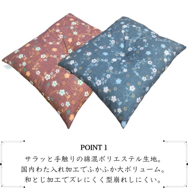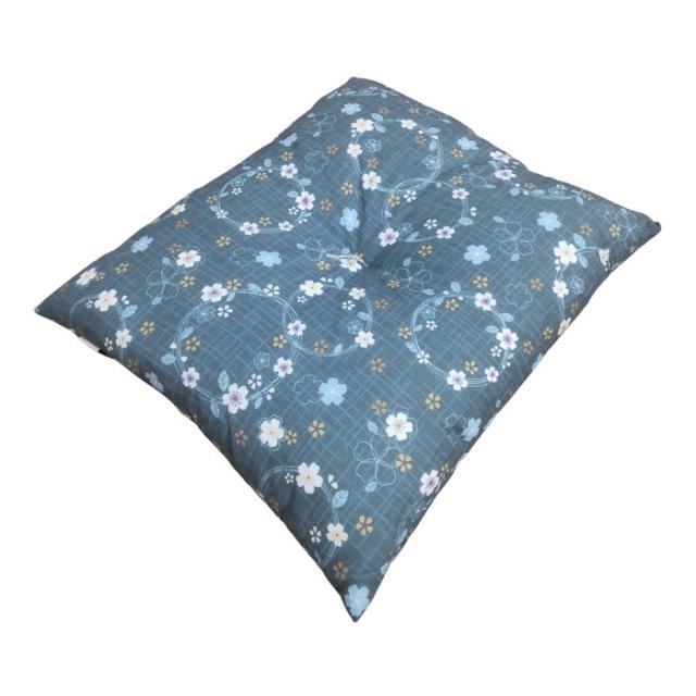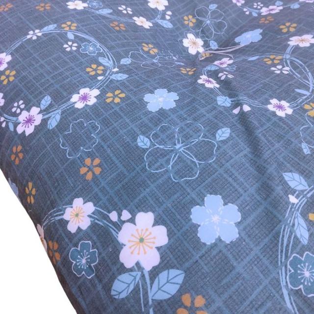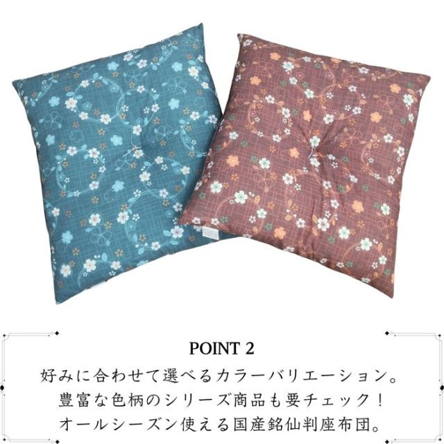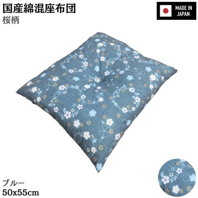 国産綿混座布団 銘仙判 桜柄 ブルー 約50x55x10cm 綿混プリント生地 クッション 国内わた入れ加工 日本製