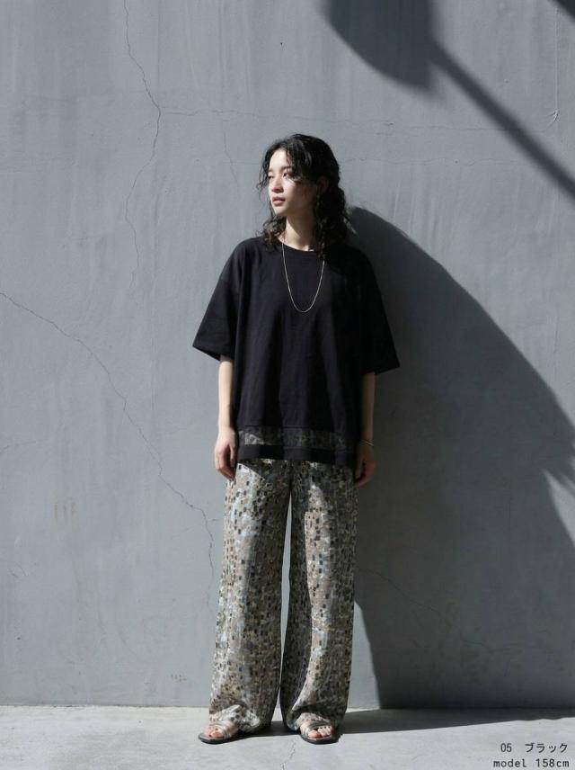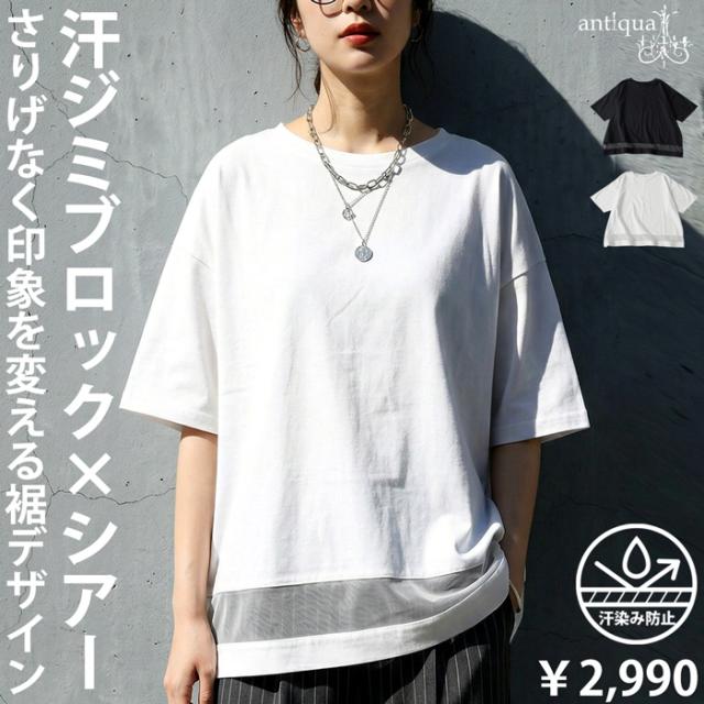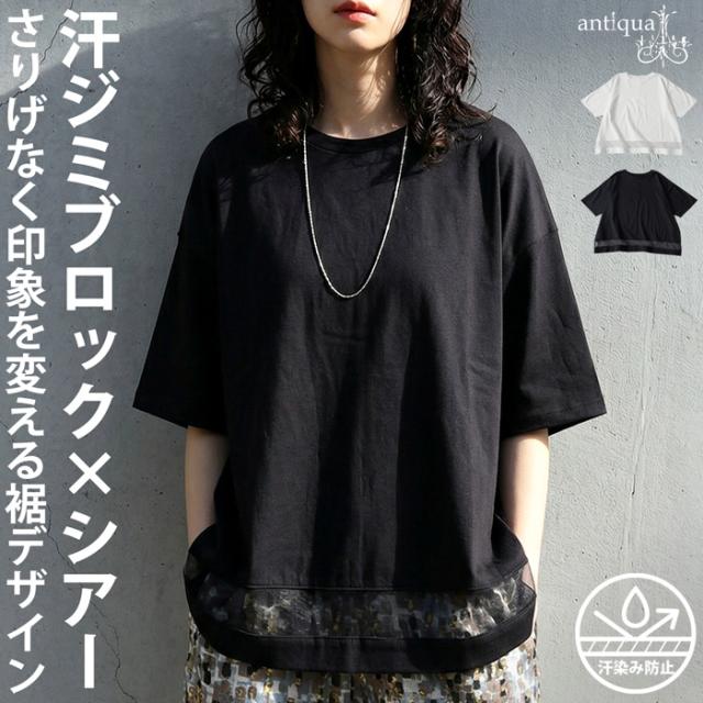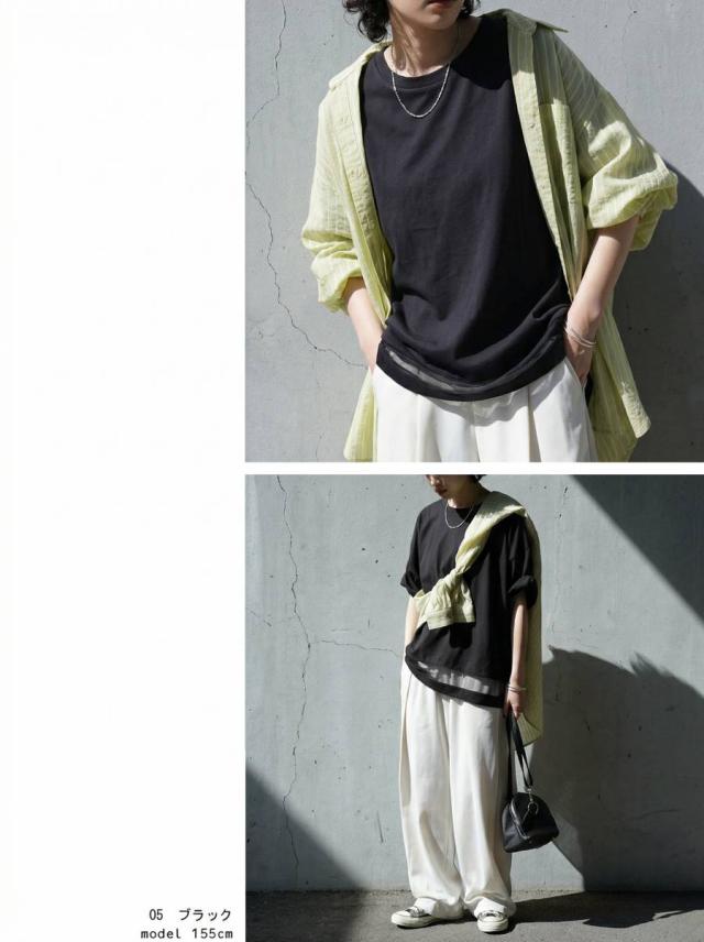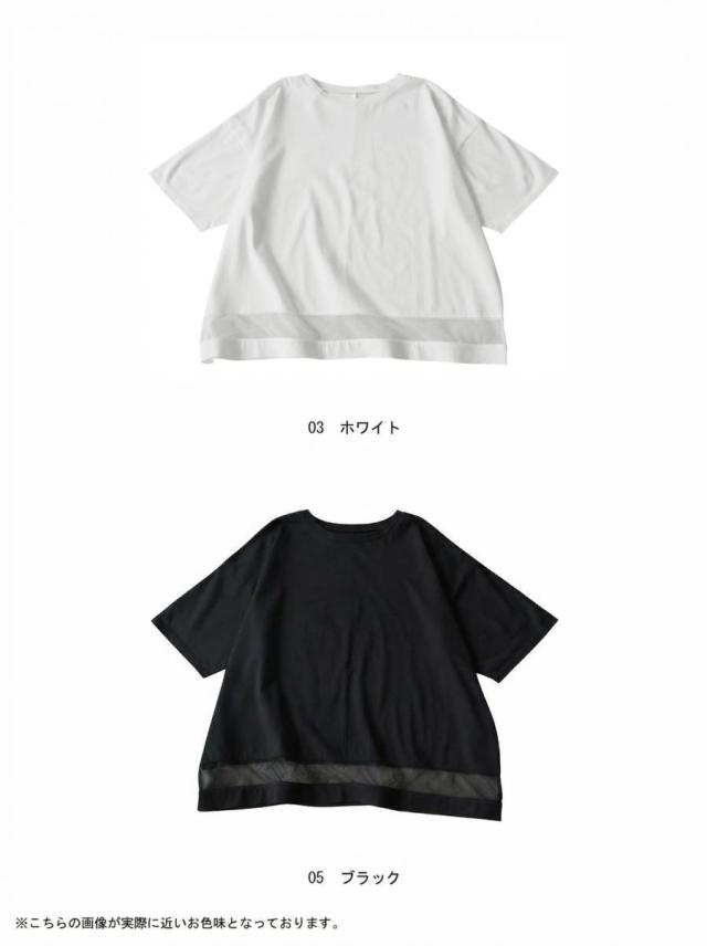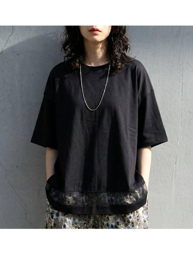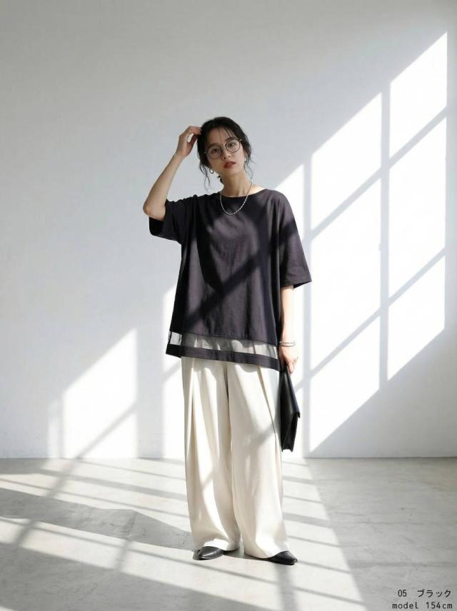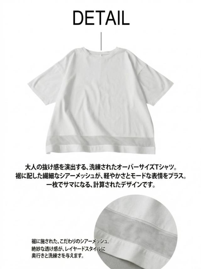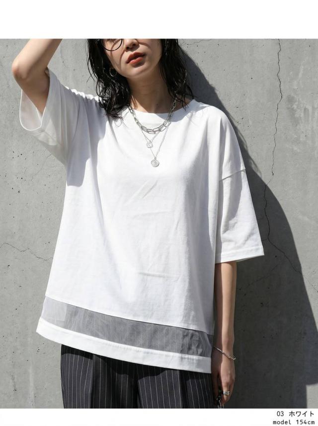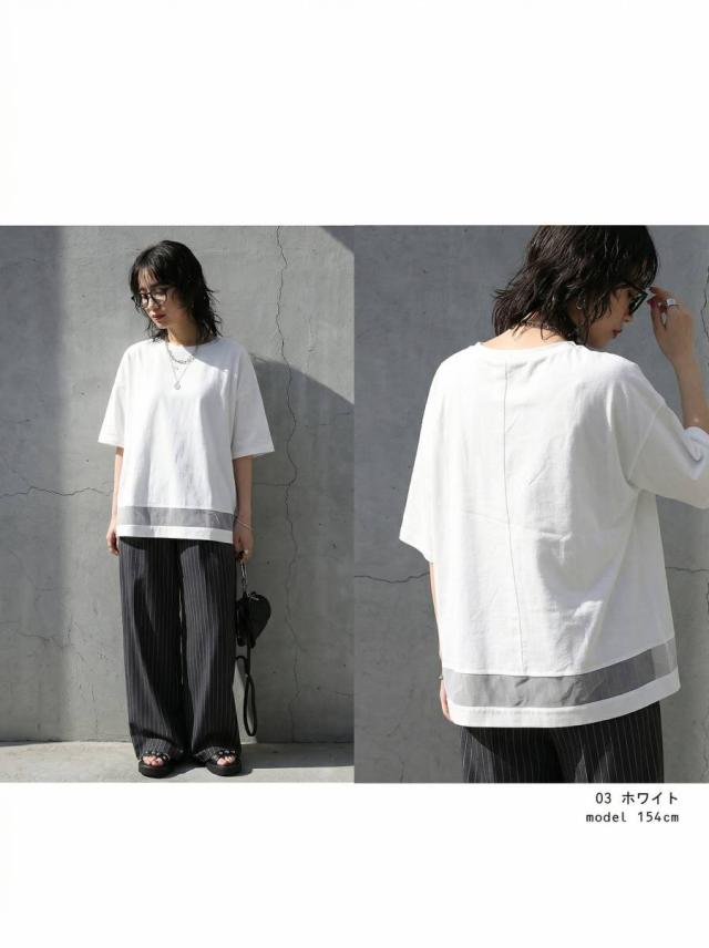 pn-00615 カットソー トップス プルオーバー オーバーサイズ ゆったり 体型カバー シアー 切替 透け感 レイヤード モード カジュアル 大人 上品 高見え デザイン シンプル きれいめ