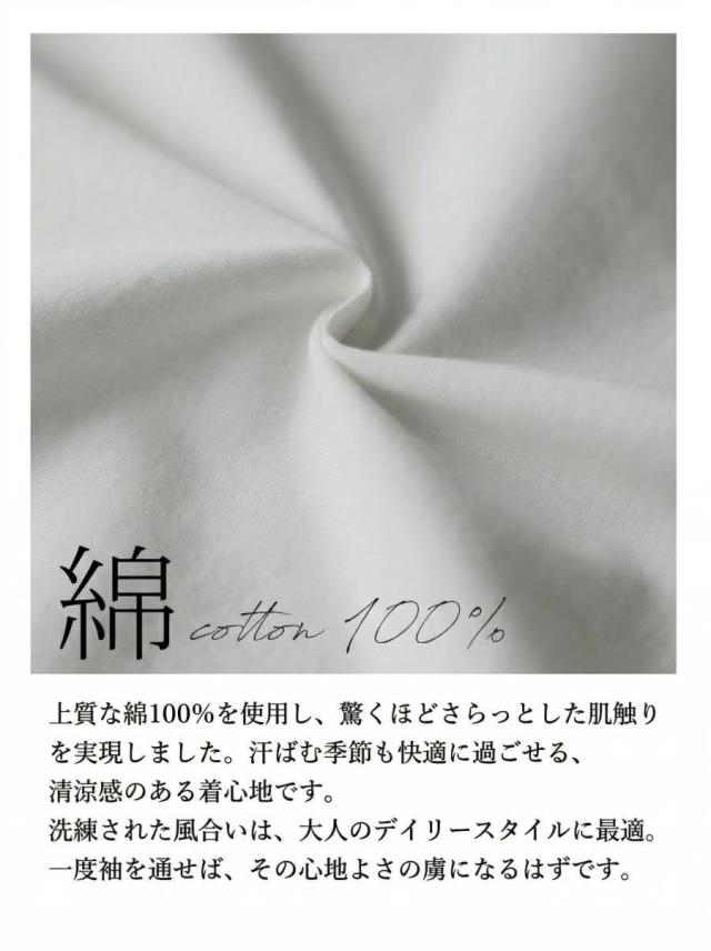 袖丈は程よい半袖で、腕周りをさりげなくカバーしながら軽やかに着用できます。