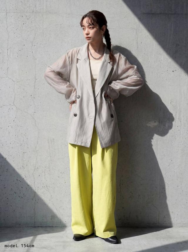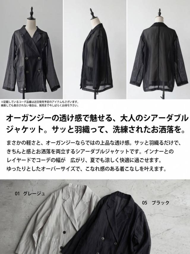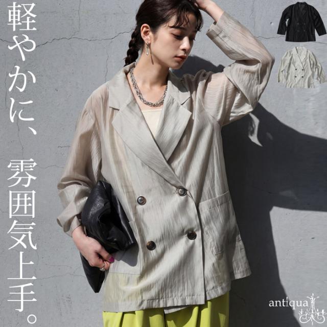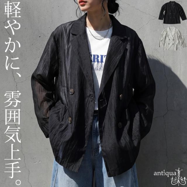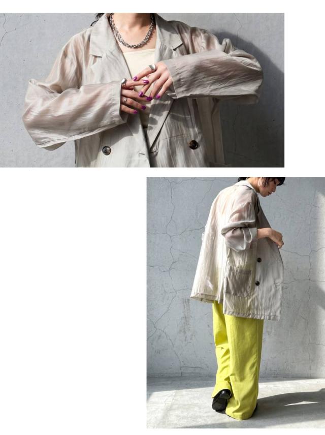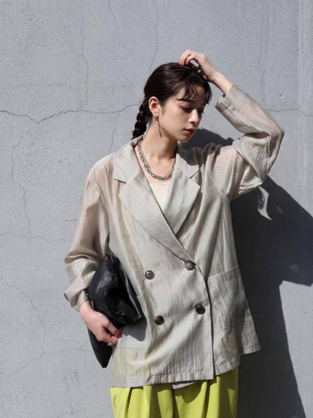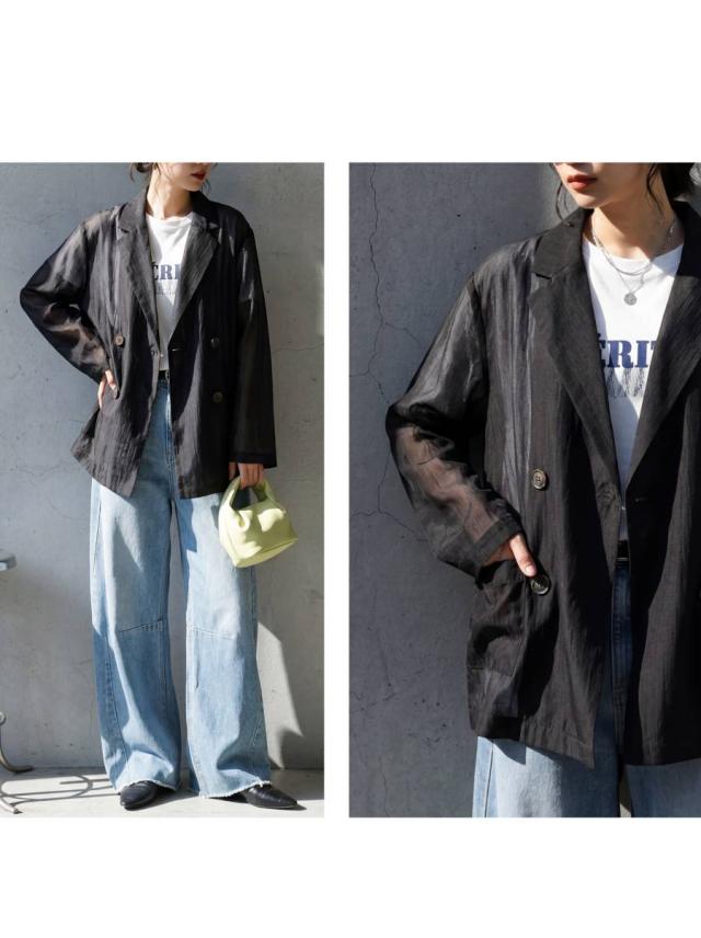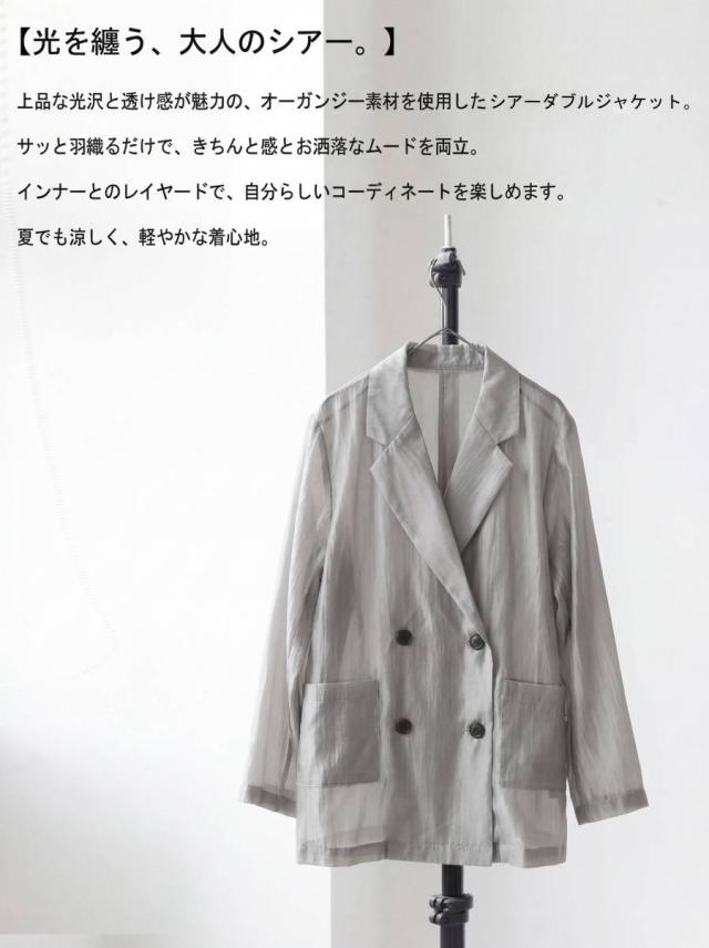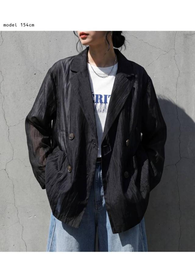 ep-00208 ライトアウター テーラードジャケット オーガンジー 羽織り 軽量 薄手 ダブル レイヤード 透け感 上品 きれいめ カジュアル モード ゆったり 体型カバー シンプル モード