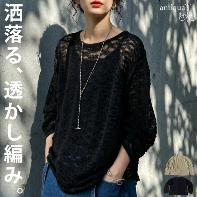 ニット 透かし編み シアーニット レディース 長袖 送料無料・メール便不可 春新作