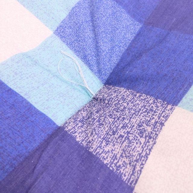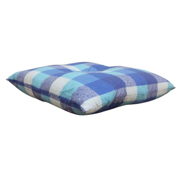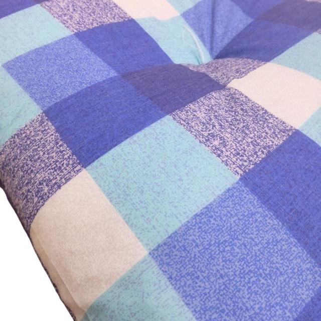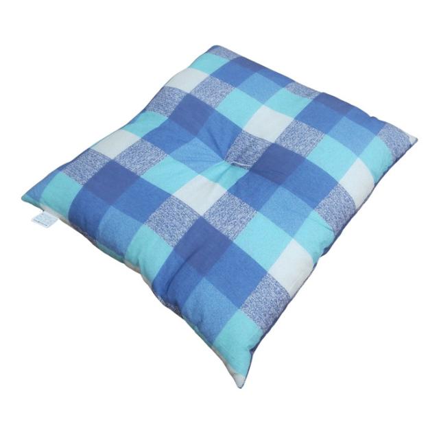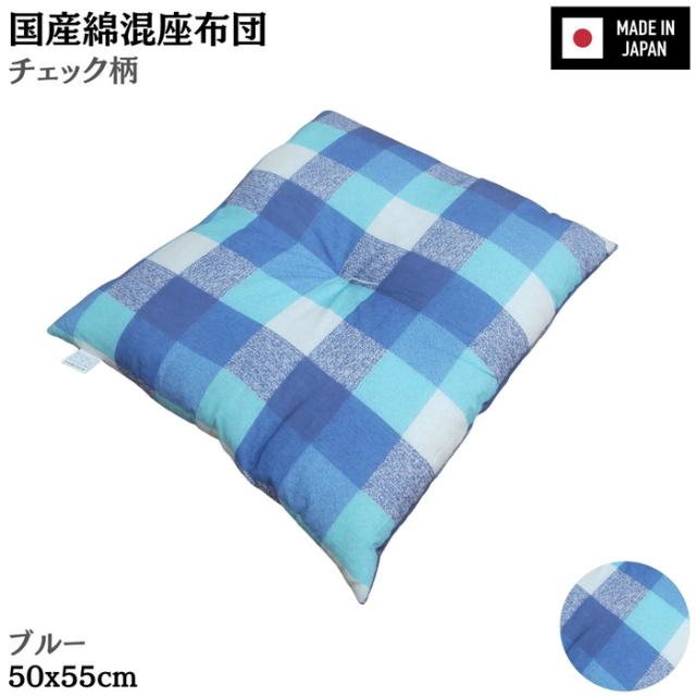国産綿混座布団 銘仙判 チェック柄 ブルー 約50x55x10cm 綿混プリント生地 クッション 国内わた入れ加工 日本製