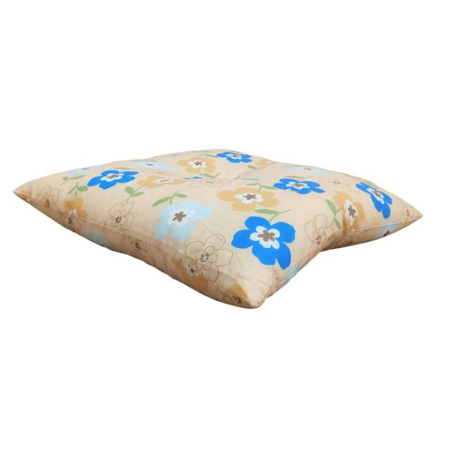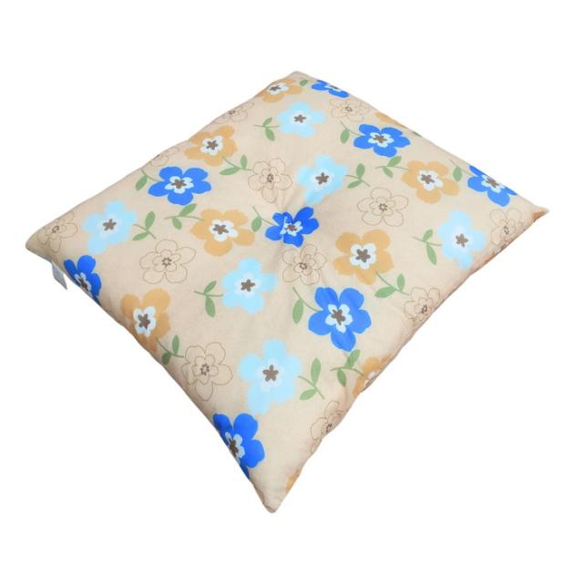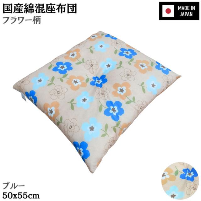 国産綿混座布団 銘仙判 フラワー柄 ブルー 約50x55x10cm 綿混プリント生地 クッション 国内わた入れ加工 日本製