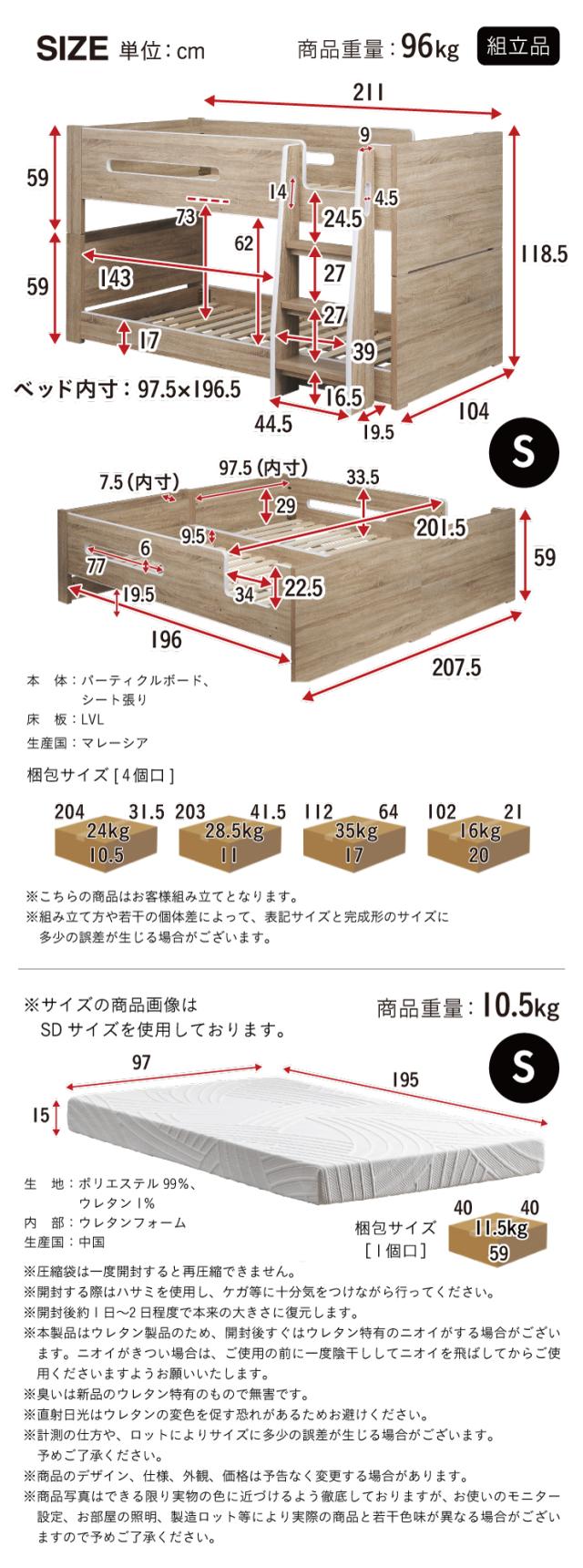 ベッド本体:約W211 x D104 x H118.5cm