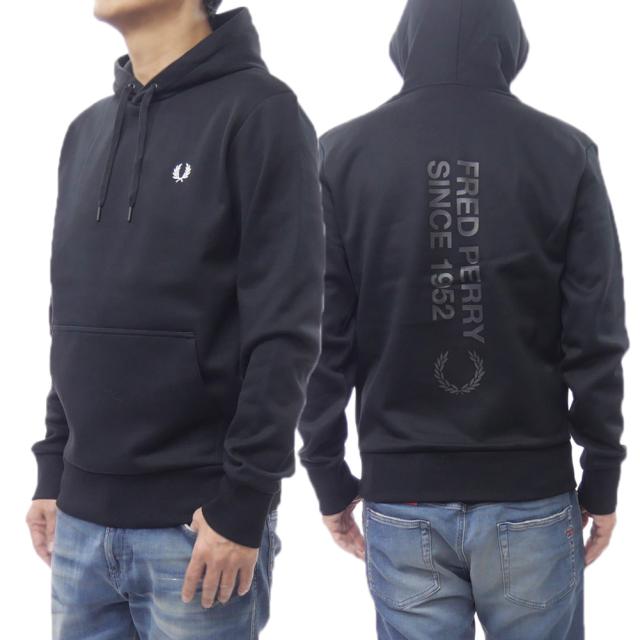 セールAW FRED PERRY フレッドペリー メンズプルオーバーパーカー M1371 / BOLD BRANDING HOODED SWEATSHIRT ブラック