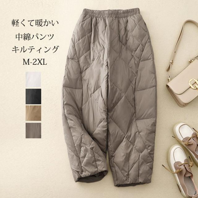 中綿パンツ レディース 秋冬 バルーンパンツ キルティング パンツ 中綿 キルティングパンツ ウエストゴム ポケット付き ワイドパンツ 無地 ロングパンツ ボトムス 暖か 防寒 保温 ルームウエア ゆ中綿パンツ レディース 秋冬 バルーン ボトムス パンツ 割引 ホワイト ブラック キャメル グレー M L XL 2XL