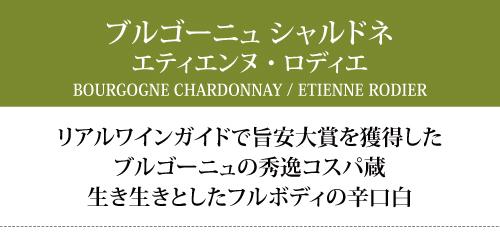 あのリアルワインガイドで、「2012年ブルゴーニュピノ・ノワール ヴィエイユ・ヴィーニュエレーヴ・アン・フュ・ド・シェーヌ」が「旨安大賞」を獲得したブル蔵「エティエンヌ・ロディエ」。 近年、一番スタンダードの赤でさえ、2,000 円はくだらない価格高騰が止まらないブルゴーニュワイン。普段飲みが難しいといわれるブルピノをなんとか毎日楽しめないかと、苦心して探し出しました。ブルゴーニュファンのお悩みを見事解消した救世主!ご自宅のハウスワインとして、ぜひ、まとめ買いでどうぞ。