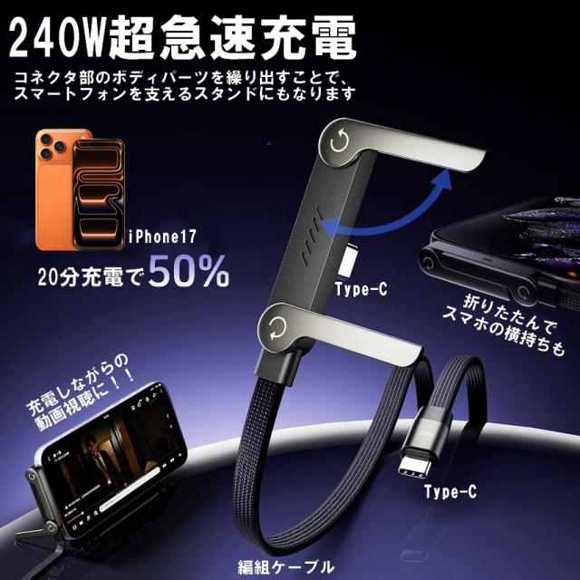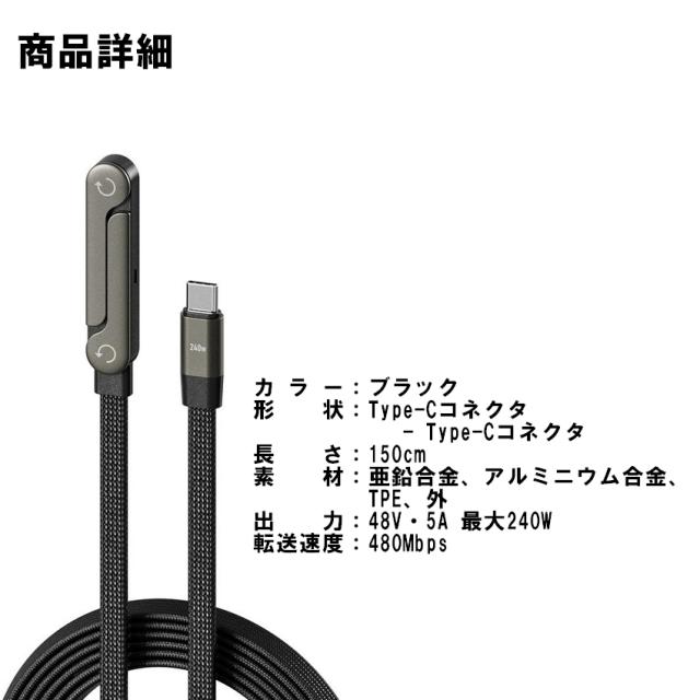 充電ケーブル type-c 急速 PD タイプC ケーブル C to C 1.5m L字 typec iPhone Android USB スマホスタンド 卓上 携帯スタンド スタンド 軽量 充電しながら 角度調整 typeC 240W USB-C 充電ケーブル PD対応 断線しにくい 回転 アンドロイド USBケーブル 急速充電 送料無料