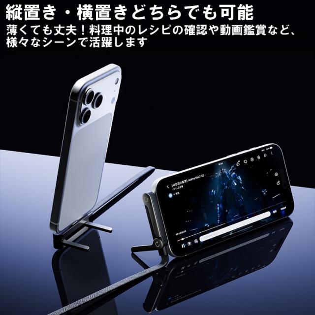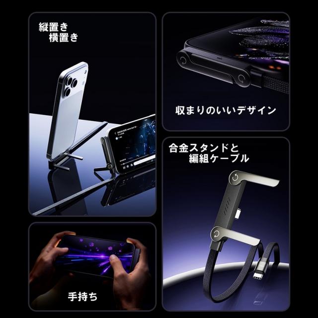 縦向き/横向きのマルチアングルが可能で、動画視聴、ゲームプレイしながら充電ができます。