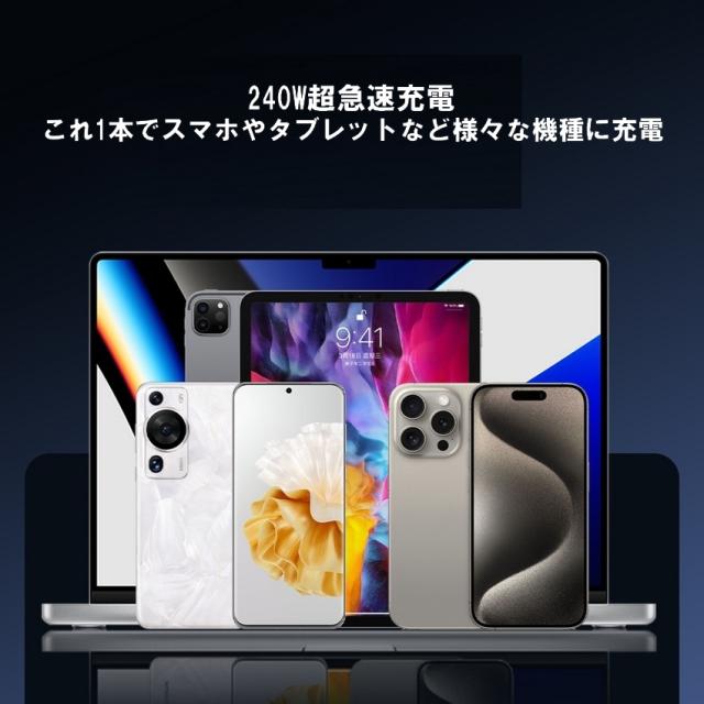 最大 240W の高出力をサポートし、スマートフォン、タブレットはもちろん、高電力を必要とするノートパソコンにも対応しています。