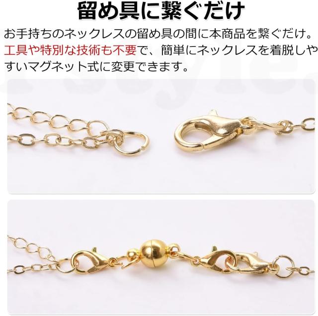 お手持ちのネックレスの留め具の間に本製品をつなぐだけ。工具や特別な技術も不要で、簡単にネックレスを脱着しやすい磁石に変更できます。