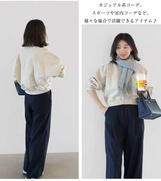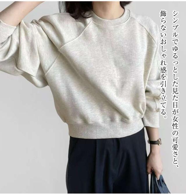 ★スウェット レディース トレーナー Tシャツ プルオーバー トップス 体型カバー 長袖 クルーネック 春 秋冬 カジュアル ゆったり★