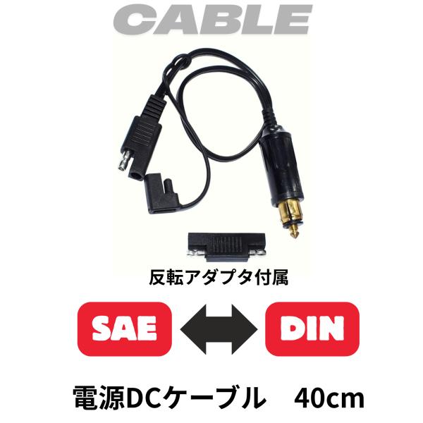 DIN SAE バッテリー充電器接続 電源取り出しケーブル SAEプラグ反転アダプタ付属 40cm 18AWG BMWオートバイに最適 Hella