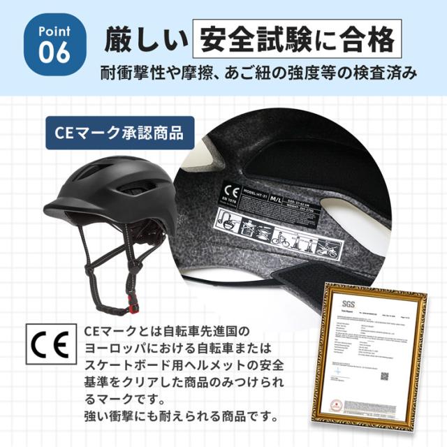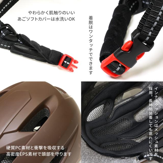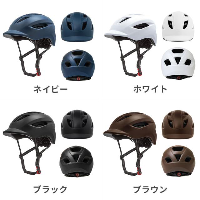自転車用ヘルメット■頑丈で安心の高品質素材ヘルメットの表面は、衝撃に強く非常に割れにくい硬質PC素材を使用。ヘルメットの内側は、衝突の衝撃を軽減し頭部をしっかり保護をする高密度EPS素材を使用。■つばのあるヘルメットなので、太陽のまぶしさを軽減できます。■超軽量で通気性抜群頭や首への負担が少ないよう、重さはたった250g。通気口を大きめに設計することで高い通気性と快適な被り心地を実現。■サイズ調節ができる頭囲サイズ57-62cmなので、家族で使いまわしも可能。■インナークッションは取り外して洗濯機できる被っていると気になる汗や臭い…肌に接するインナークッションは洗濯できるのでずっと清潔に使えます。■CEマーク承認商品耐衝撃性や摩擦、あご紐の強度など検査済みなので、安心してお使いいただけます。検索ワ?