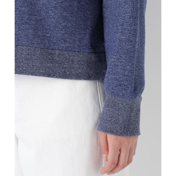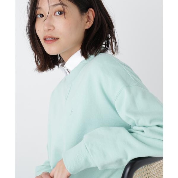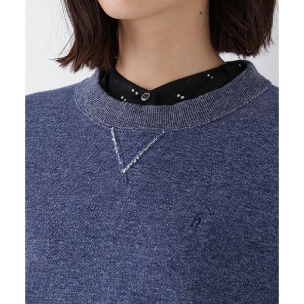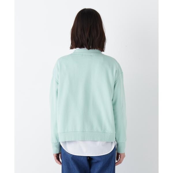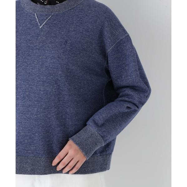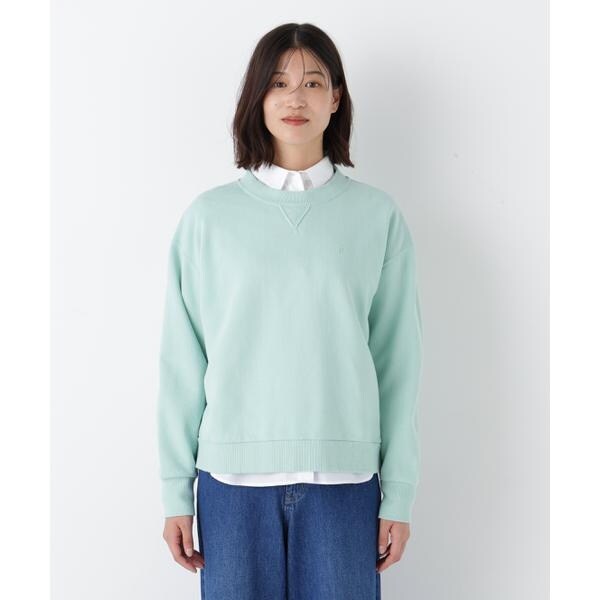 裏毛スウェットに「h」刺繍を同色で施した春カラースウェットです。衿下のガゼットデザインでカジュアル感があり見頃は横地の目使いにしています。