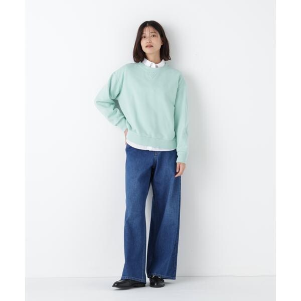 カラーが目を惹くスウェットなので重くなりがちな冬のスタイリングに鮮度をプラスしてくれます。デニム合わせのベーシックなカジュアルスタイルもおすすめです。