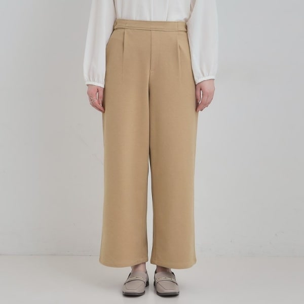 ウエスト後ろ部分がゴム仕様で柔らかく暖かな穿き心地が魅力の毎日穿きたくなるワイドパンツです。