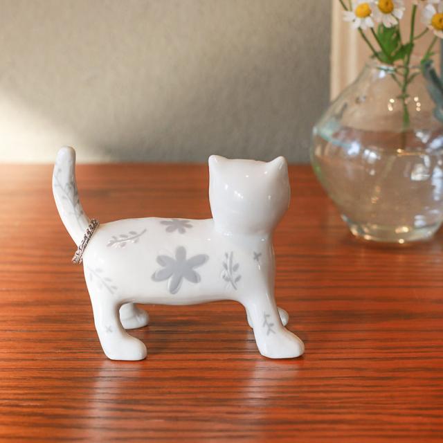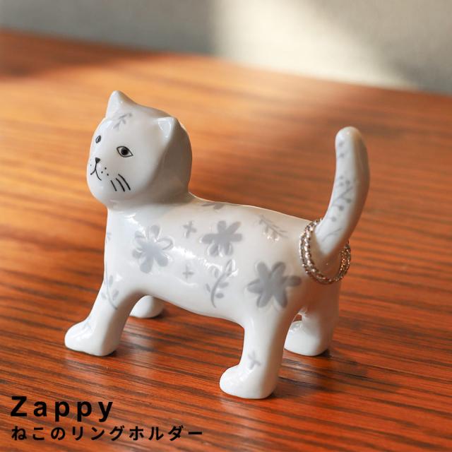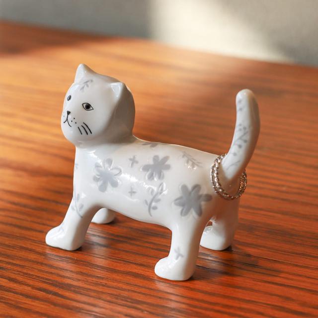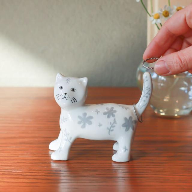 花柄をまとった磁器の猫が、そっとリングを預かってくれる愛らしい『Zappy(ザッピー) ねこのリングホルダー』。