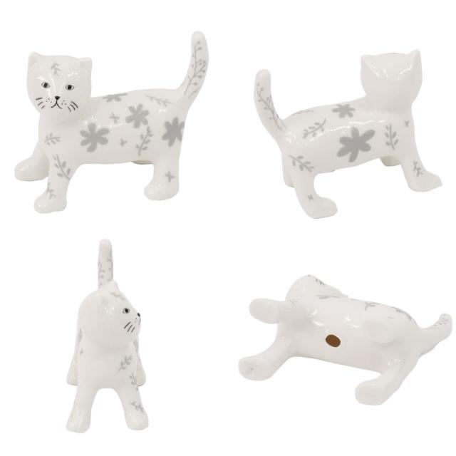 『Zappy(ザッピー) ねこのリングホルダー』は、やわらかな花柄がほどこされた磁器製の猫のリングホルダーです。