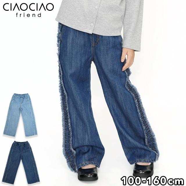 デニムパンツ フリンジデニムパンツ フリンジパンツ ジーパン ガールズパンツ デニム フリンジ ワイドパンツ ワイド ウエストゴム キッズパンツ キッズ 子供服 子ども服 こども服 子供 子ども こども 女の子 女子 女児 ガール ガールス