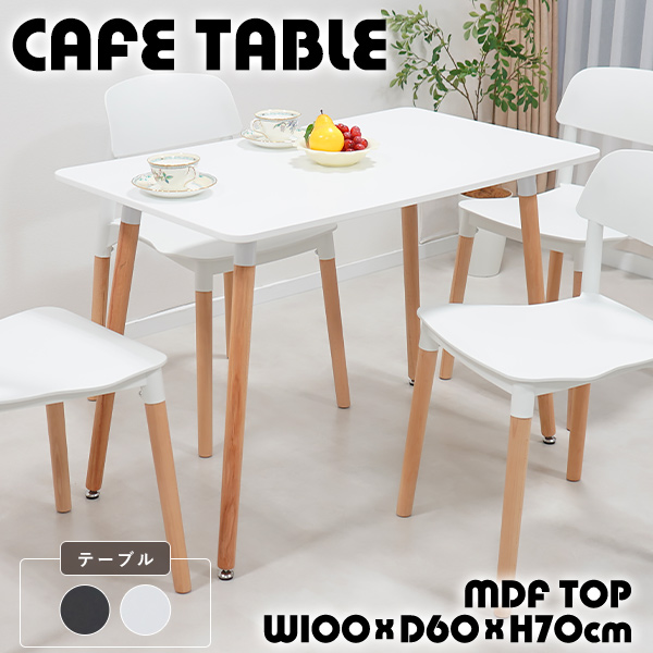 カフェテーブル ダイニングテーブル 選べるカラー 幅約100cmx奥行約60cmx高さ約70cm おしゃれ 角形 スクエア 木製脚 MDF PUペイント塗装 北欧 一人暮らし 組み立て簡単 2人 3人 4人用 dtable-t26-mdf100