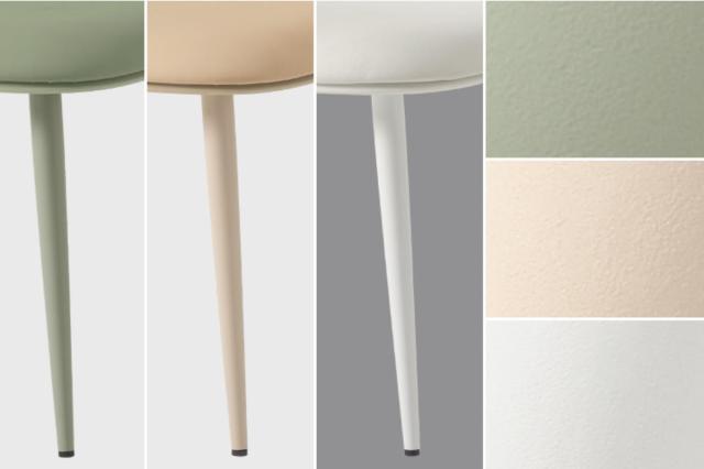 座面に合わせて脚もカラーコーティングされ、マットな質感が空間にやさしい雰囲気を添えます。