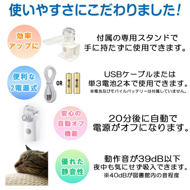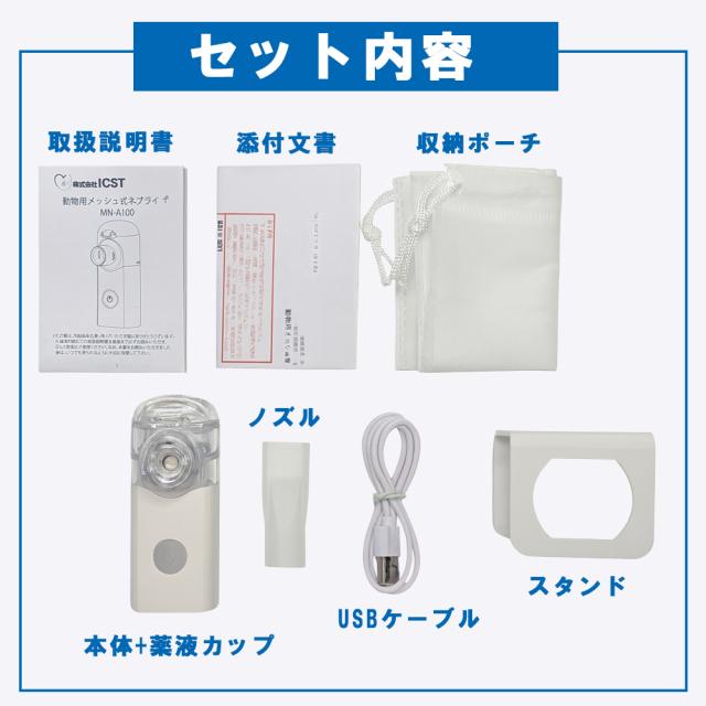 動物用メッシュ式ネブライザー NOZOMI MN-A100 特典つき 専用マスク スタンド付き ノゾミ 医療用 吸入器 コンパクト 静音 2電源 USB・電池 ネブライザー 動物 吸入器 犬 ネブライザー 猫 吸入器