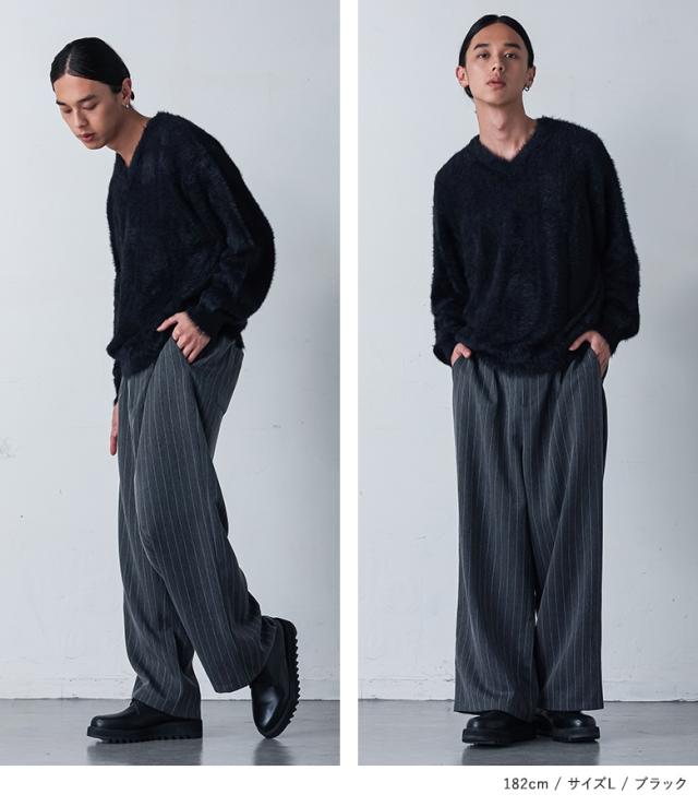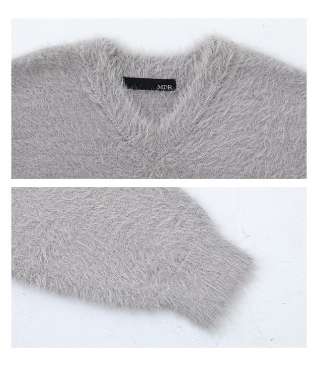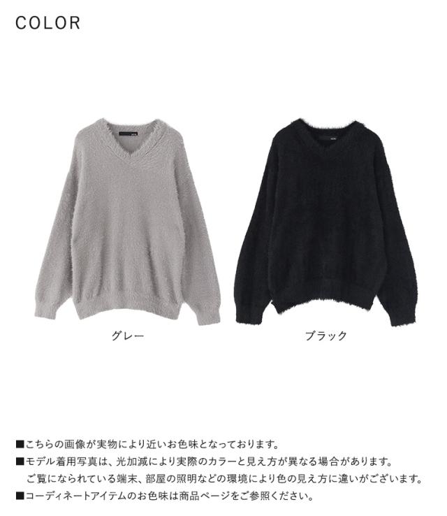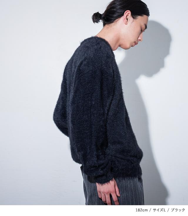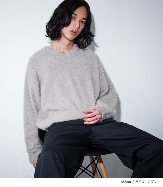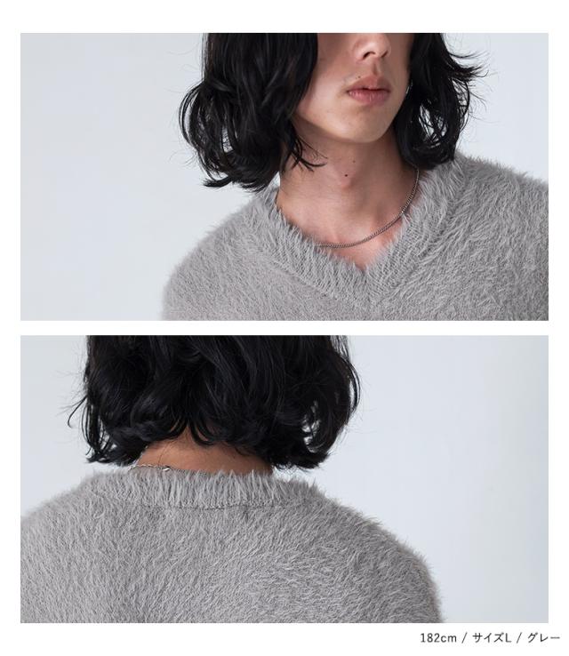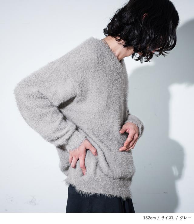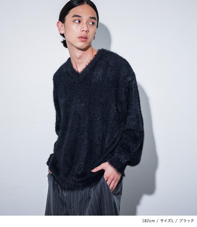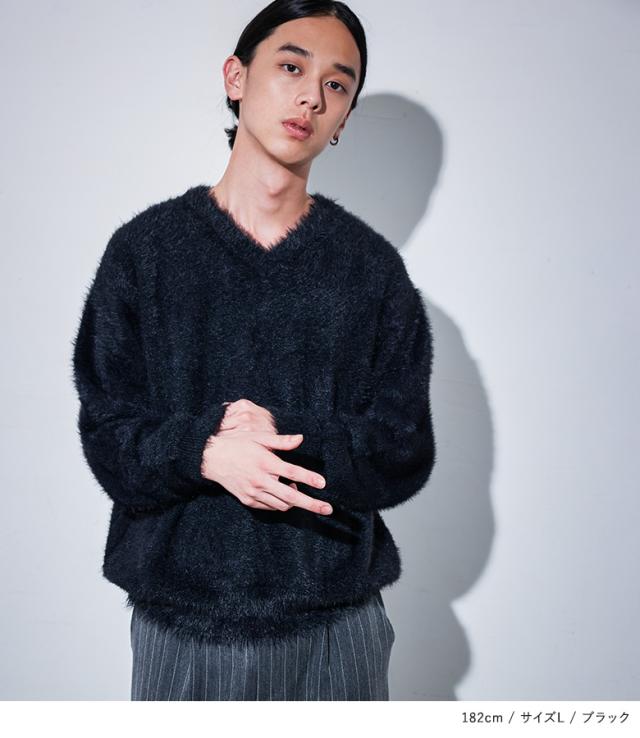 <冬新作>『MDRシャギーVネックニットトップス』【メール便不可】【30】[ニット 長袖 メンズ トップス セーター シャギーニット Vネック レイヤード 重ね着 プルオーバー ゆったり あったか 秋 冬]