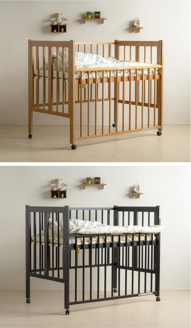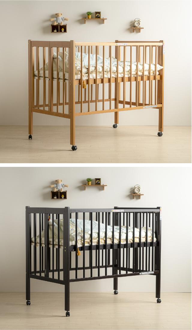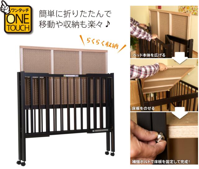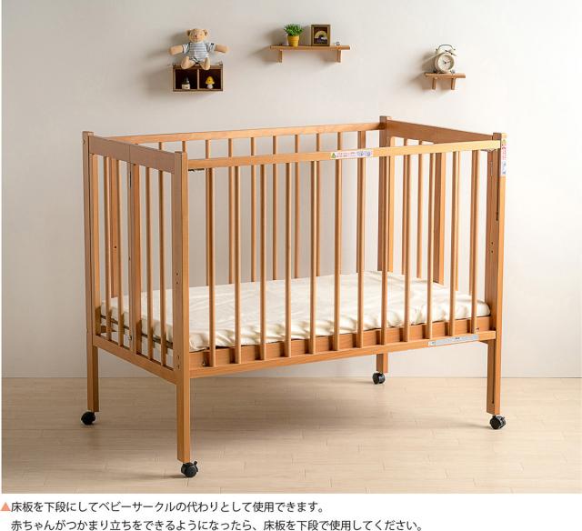 日本製ベビーベッド「ワンタッチハイベッド クール(B品/アウトレット)」 レギュラーサイズ 木製 ベビーベット 折りたたみ ハイタイプ 石崎家具