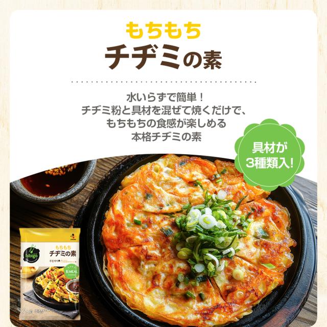 ■賞味期間 : 製造後8ヶ月(未開封) ■原材料名:具材入り調味料[にんじん、たけのこ、ひらたけ、たん白加水分解物、あさりエキス、食塩、いかエキス、ほたてエキス/調味料(アミノ酸)、酸化防止剤(ビタミンC)]、チヂミ専用粉[小麦粉、食塩、とうもろこしでん粉、にんにく粉、たまねぎ粉、こしょう/加工でんぷん、ベーキングパウダー、増粘剤(キサンタンガム)、着色料(ビタミンB2)]