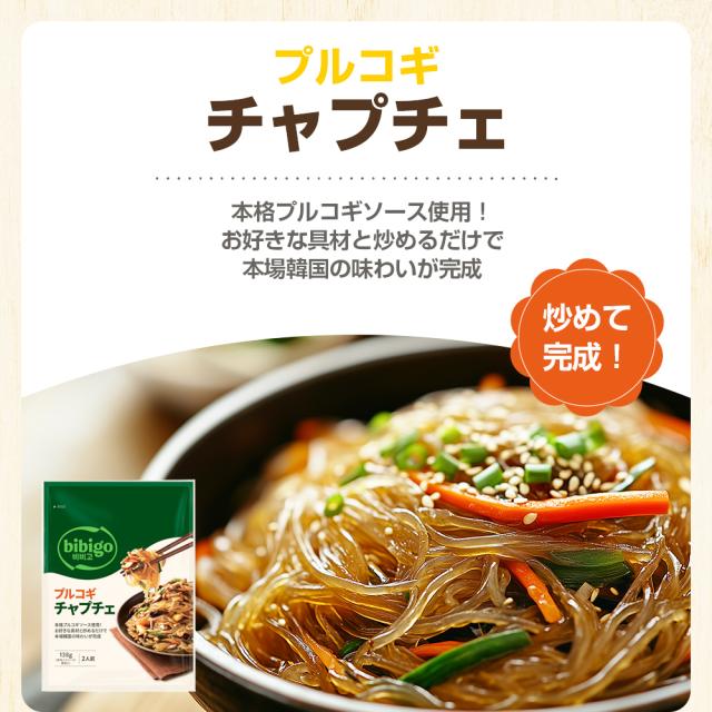 ■賞味期間 : 製造後8ヶ月(未開封) ■原材料名:具材入りソース[プルコギソース(しょうゆ、砂糖、果糖ぶどう糖液糖、たまねぎピューレ、その他)、えのき、きくらげ、たけのこ、にんじん、しょうゆ、牛肉だしの素、還元水あめ、砂糖、にんにくペースト、トマトペースト、ごま油、ビーフオイル、しょうがペースト、酵母エキス、こしょう/調味料(アミノ酸等)、乳酸Ca、カラメル色素、香料、香辛料抽出物]、はるさめ[はるさめ(さつまいもでん粉)(中国製造)/増粘剤(アルギン酸ナトリウム)、酸化防止剤(ビタミンC)]、(一部に小麦・乳成分・牛肉・ごま・大豆を含む)