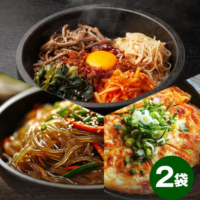 bibigo 選べる2袋セット ビビンバ チャプチェ チヂミ 1000円ポッキリ 具材入り時短料理 お家韓国 韓国料理 料理の素 送料無料 [メール便]
