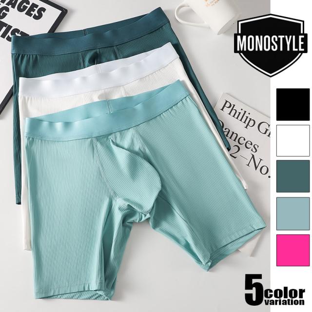 メンズボクサーパンツ MONOSTYLE/モノスタイル ロングボクサー 立体縫製 ストレッチ 無地 リブ素材 吸汗速乾 前閉じ 男性下着 パンツ 5色展開 シンプル 快適フィット
