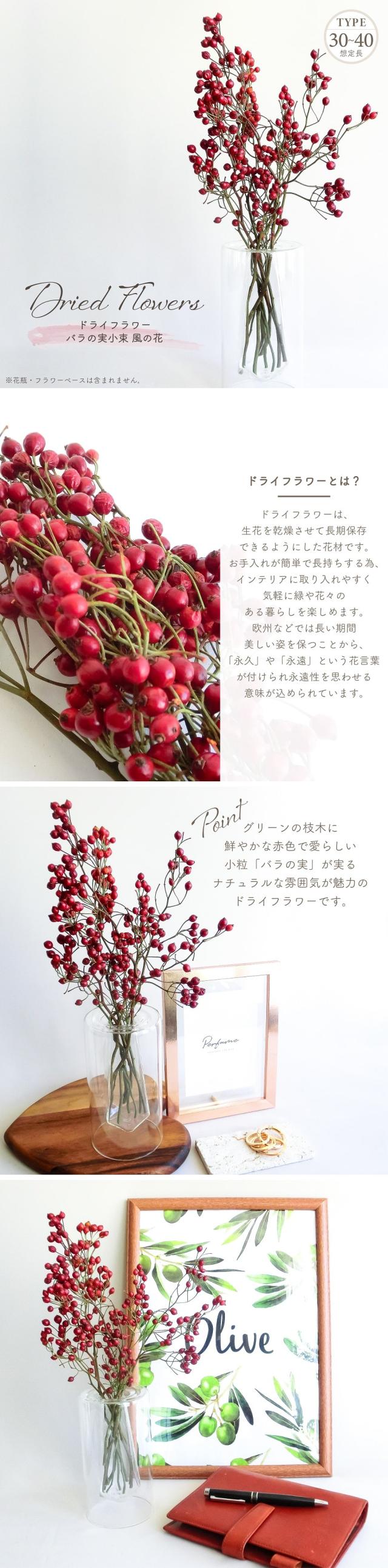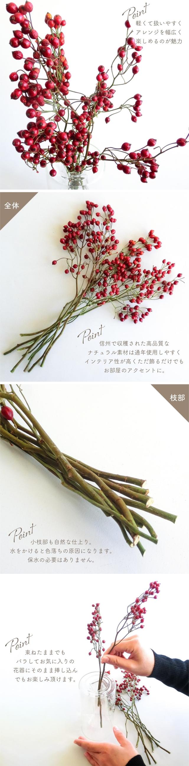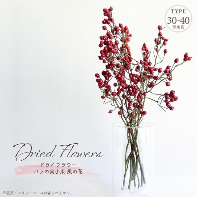 ドライフラワー バラの実 小束 風の花 全長約30-40cm 国産 天然素材 ナチュラル 無着色 実物 葉物 枝物 レッド ブラウン アレンジメント インテリア