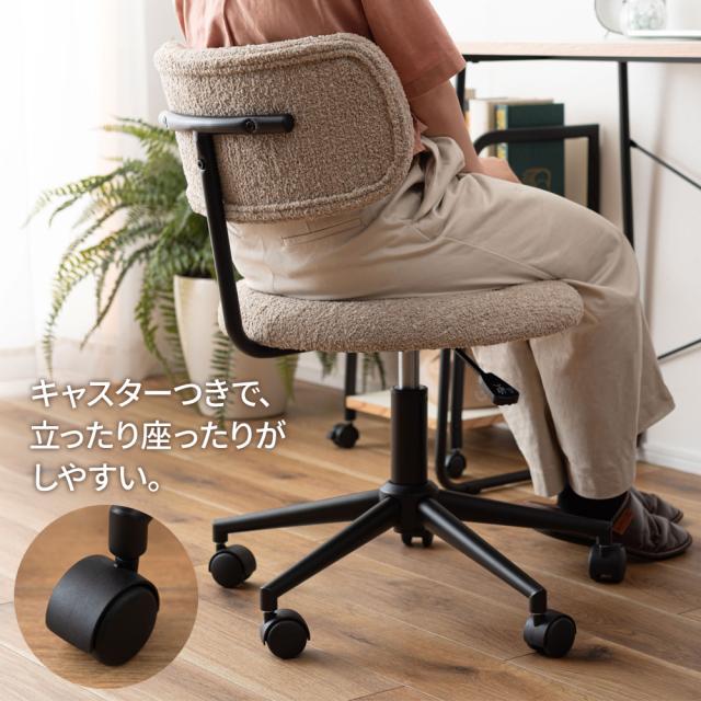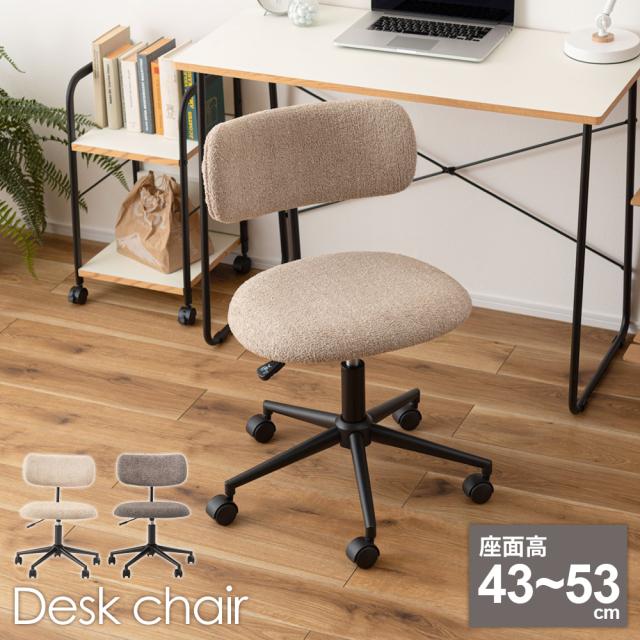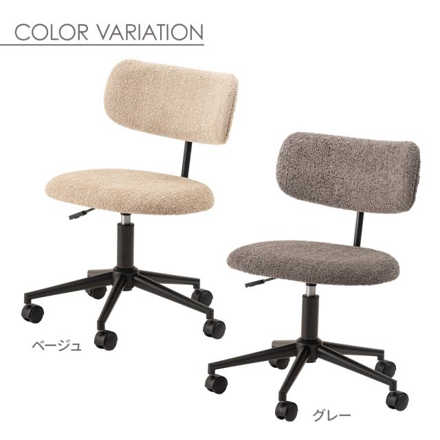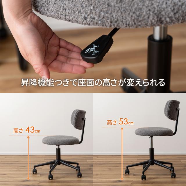 椅子 コンパクト デスクチェア キャスター付き PC-269 ベージュ /グレー | イス いす デスク おしゃれ かわいい ファブリック 布 チェア ワークチェア シンプル 昇降機能 回転 在宅勤務 オフィス 背もたれ リビング ダイニング