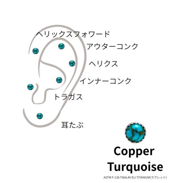ボディピアス 18G 16G コッパーターコイズ 天然石ピアス 金属アレルギー対応 チタン つけっぱなし インターナル ラブレットスタッド ロブ トラガスピアス 軟骨ピアス