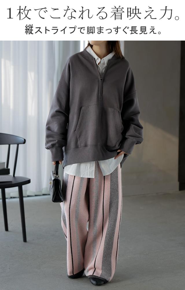 ハイゲージ ハイゲージニット ガウチョ ガウチョパンツ バギー バギーパンツ フレアパンツ フレア ワーク ワークパンツ 太め 太目 ずぼん ボックスシルエット ハイライズ ハイライズパンツ ハイウエストパンツ ハイウェストパンツ ボーイフレンド ストレートパンツ イージーパンツ イージー リラックスパンツ リラックスボトム リラックス 長ズボン 長ずぼん セミ セミワイドパンツ 大きいサイズ対応 脚長 脚長効果 スタイルアップ 小尻 小尻パンツ ポケット ポケット付き ポッケ トール丈 トール トールサイズ 長い 長め 高身長 170cm 175cm 180cm レイヤード レイヤードパンツ レイヤードワイドパンツ レイヤードロングパンツ ロングレイヤードパンツ ライン ラインパンツ コクーン コクーンパンツ コクーンシルエット シワになりにくい シワ シワにならない ノンアイロン アイロン不要 アイロンレス チクチクしにくい ちくちくしにくい チクチクしない ちくちくしない ジャガード編み ジャガード ダブルジャガード 型崩れしにくい 風を通しにくい ゴム ゴムウエスト ゴムウェスト ウエストゴム ウェストゴム 紐 ヒモ ひも ウエスト紐 ウエスト紐パンツ 調節可能 柄 柄パンツ 総柄パンツ ストライプ柄 ボーダー ボーダー柄 ジャガードニットパンツ ジャガードニット ニットソー 幾何学模様 幾何学模様柄 幾何学 幾何学柄 編地 編み 編みニット ハイゲージ 高密度 高密度ニットハイゲージパンツ ハイゲージニットパンツ 伸縮性 伸縮 リラックスウェア リラックスウエア ストレスフリー ルームウェア ルームウエア 部屋着 寝間着 パジャマ お泊り ワンマイル ワンマイルウェア ワンマイルウエア ブラウン×ブラック グレー×ダスティピンク ブラック 黒色 ブラウン モカ 茶 茶色 灰色 ピンク ピンク色 桃 桃色 ラクチン らくちん 楽ちん 楽 動きやすい ゆる ゆったりサイズ ゆるカジ ゆるい ゆるファッション フリーサイズ フリー S M L LL 2L XL 3L XXL LLL 重ね着 重ね レイヤードコーデ 二の腕カバー 二の腕隠し 着痩せ 着回し お尻が隠れる 大きい 大きめ 大き目 プラスサイズ ビッグ ビック big ビックシルエット ビッグシルエット ビックサイズ ビッグサイズ オーバーサイズ オーバー カジュアル ナチュラル 大人カジュアル レディースファッション ベーシック オフィス オフィスカジュアル テレワーク リモートワーク リモート オンライン飲み会 韓国ファッション 韓国風 韓国 ストリート おうち時間 お家時間 デート お出かけ フェス リゾート ビーチ 海 旅行 飛行機 パーティー パーティ 母の日 プレゼント ギフト 贈り物 クリスマス シンプル 大人 オトナ 女性 綺麗 綺麗目 きれい キレイ キレイめ キレイメ きれいめ 高見え 上質 上品 旬 トレンド 20代 30代 40代 50代 60代 おしゃれ お洒落 オシャレ 可愛い かわいい カワイイ カッコいい 格好良い カッコイイ 春 夏 春夏 秋冬 HUG.U HUGU ハグユー はぐゆー