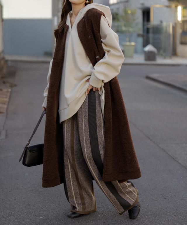 表情豊かなストライプ柄でスタイリングの主役になるボトムスです。