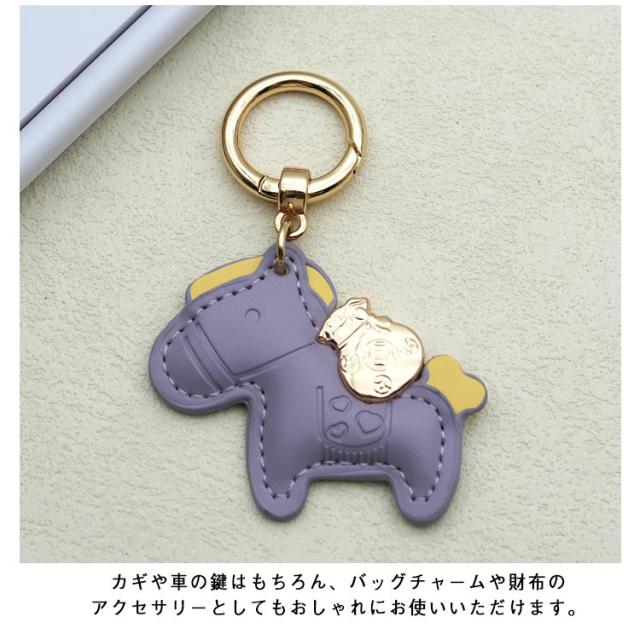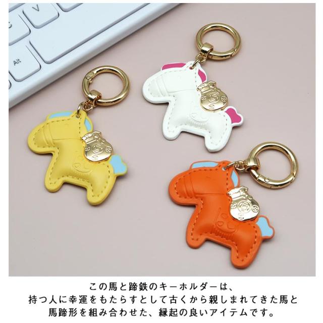 馬と蹄鉄のキーホルダー 縁起の良い馬と馬蹄 キーホルダー 皮革 バッグチャーム 飾り うま モチーフ アクセサリー 革小物 軽量 薄型 小型 おしゃれ かわいい レザーキーリング 車の鍵 かぎ ストラップ 財布 金運 開運 母の日 プレゼント 2026年 干支 午年 贈り物