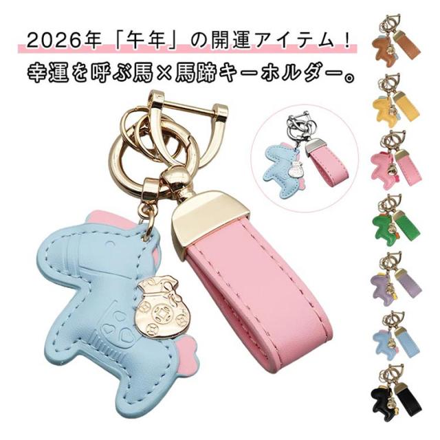 馬と蹄鉄のキーホルダー 馬モチーフ バッグチャーム キーホルダー 皮革 レザー 2026年 干支 午年 グッズ バッグチャーム うま モチーフ アクセサリー 革小物 軽量 小型 おしゃれ かわいい レザーキーリング 車の鍵 かぎ 馬年ギフト プレゼント 午年贈り物