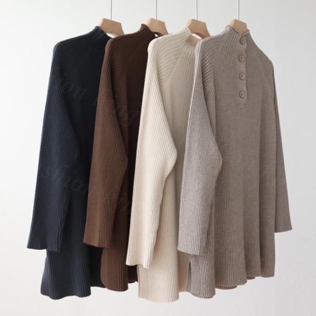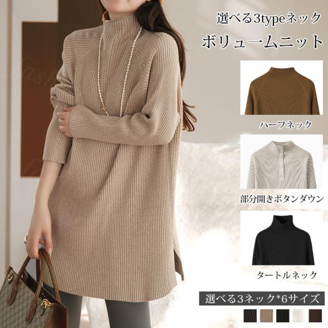 <1点3,250円!クーポン利用で>ハイネックセーター ニットセーター 3TYPE レディース ボリュ一ムニット 可愛い 秋冬 タートルネック 長袖 タートルネック 暖かい 無地 セーター ボタン付き オーバーサイズ カジュアル ゆったり 通勤 防寒