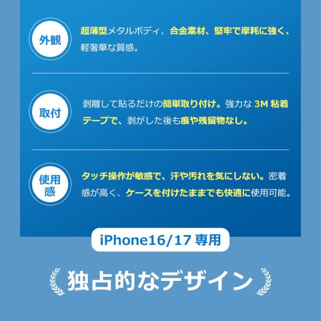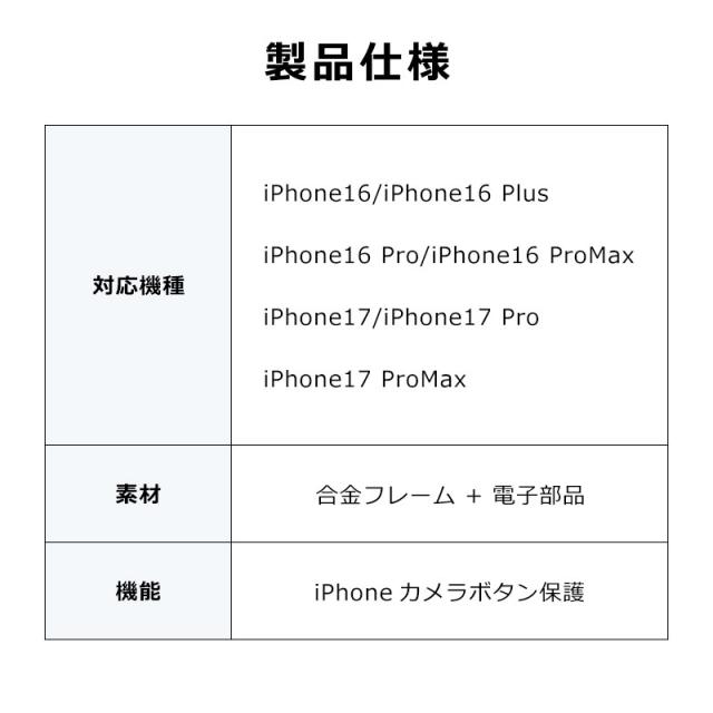 iPhone16/17シリーズ機種用 カメラボタン保護カバー スマートチップ内蔵 高感度タッチ 手汗でも確実反応 キズ・摩耗に強い 超薄型 粘着式 シャッターボタン 豊富なカラーバリエーション iPhone16/16Plus/16Pro/16Pro Max/iPhone17/17Pro/17Pro Max 対応 Apple互換品 シンプル