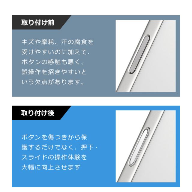 6. 取り付ける前と後で、ボタン周りの見た目がすっきりと維持されます。本体のカメラボタンを物理的にカバーすることで、傷や汚れから守り、なおかつデザイン性を高める役割も果たします。