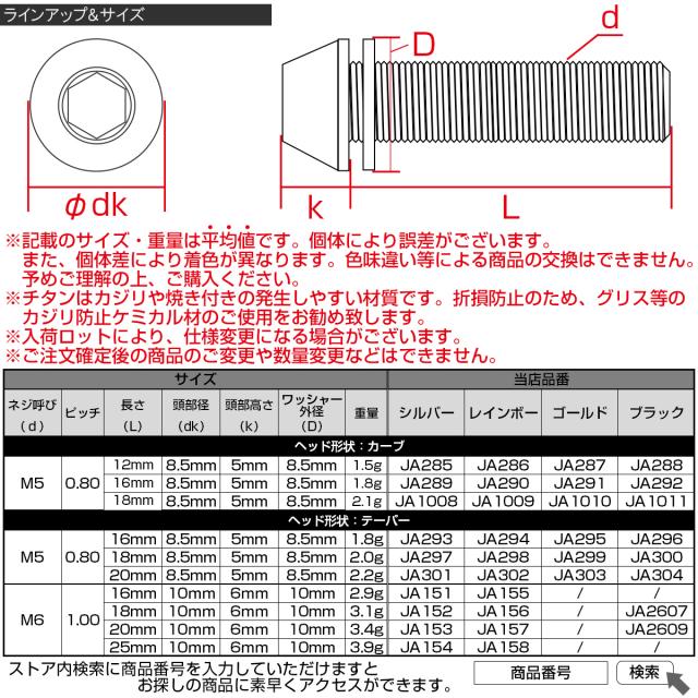 ■64チタン テーパーキャップ ワッシャー付きボルト