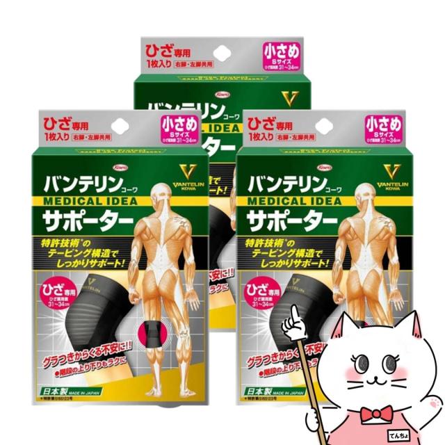 [3個セット]コーワ バンテリンサポーターひざ用 ブラックS(小さめ)※ひざ頭周囲31-34cm[膝サポーター/膝専用/左右共用1枚入り][日本製/ Kowa / 興和][送料無料] (6018324-set3)