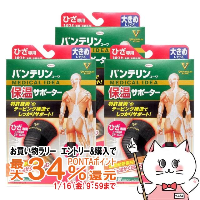 [3個セット]コーワ バンテリン保温サポーターひざ用 ブラックL(大きめ)※ひざ頭周囲37〜40cm[膝専用/左右共用1枚入り][バンテリン膝サポーター/日本製/ Kowa / 興和][送料無料] (6022692-set3)