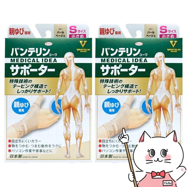 [2個セット]コーワ バンテリンサポーター親ゆび パールベージュS 小さめ/Sサイズ(1枚入り)※手の甲周囲15-17cm[親指専用/左右共用1枚入り][日本製/ Kowa / 興和][メール便発送OK](6057424-set2)