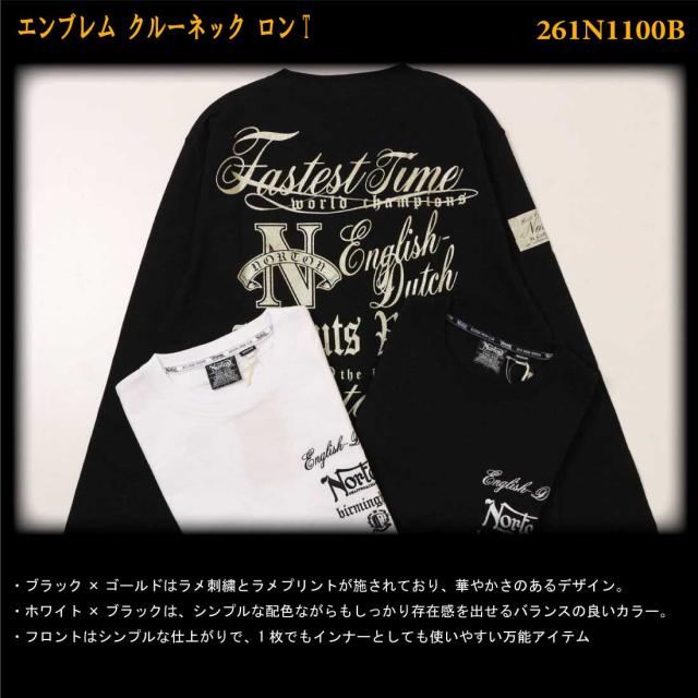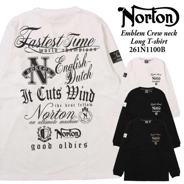 Norton ノートン 服 長袖 Tシャツ カットソー 261n1100B エンブレム クルーネック ロンT ロゴ アメカジ バイカー メンズ 服 プリント