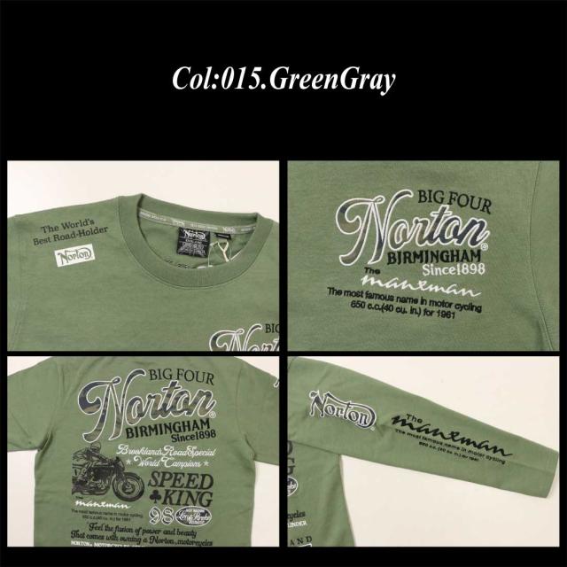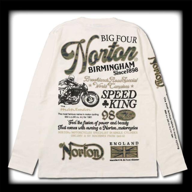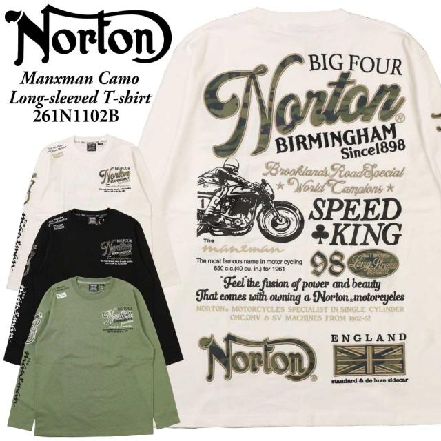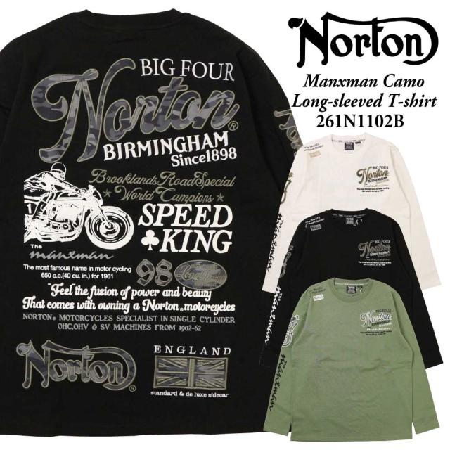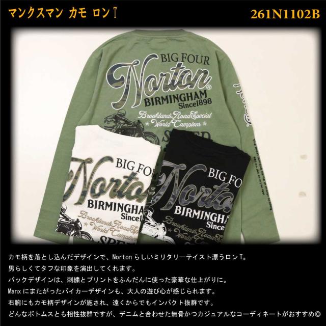 Norton ノートン 服 長袖 Tシャツ カットソー 261n1102B マンクスマン カモ ロンT ロゴ アメカジ バイカー メンズ 服 プリント 刺繍 クルーネック 迷彩