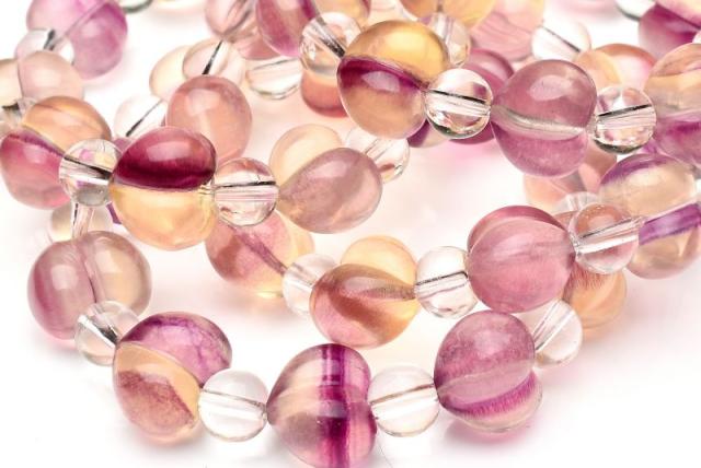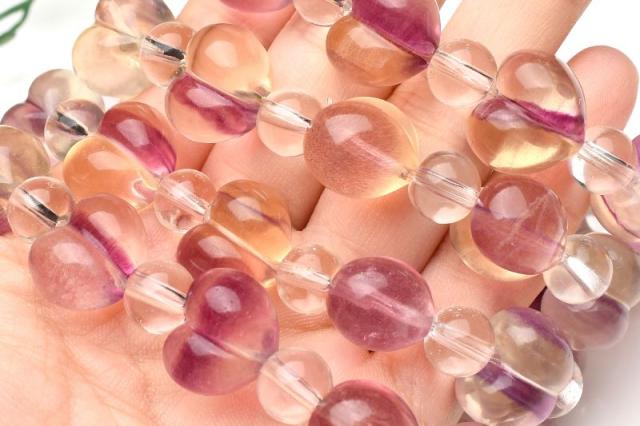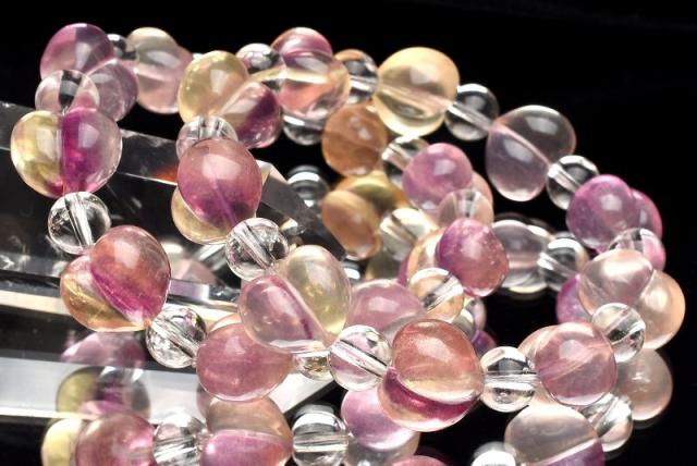 イエローパープル フローライト 12.5x15(丸玉8)mm ハート ブレスレット 1個売り 金運・仕事運_B1540